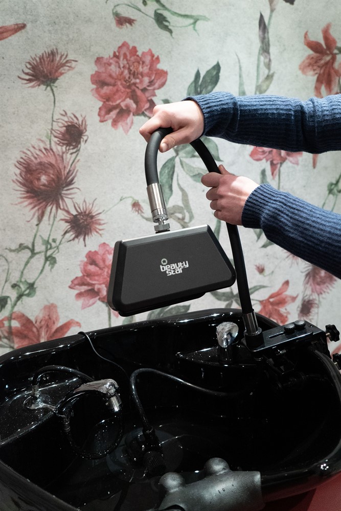BeautyStars Beautyfall är ett vattenfall som förvandlar vilken schamponering som helst till ett Head Spa på 1 minut. Vattenfallet använder en cirkulationspump som placeras i handfatet som suger upp och cirkulerar vattnet. På så vis kan du erbjuda en avslappnande Head Spa-behandling ena minuten och vanlig schamponering den andra.