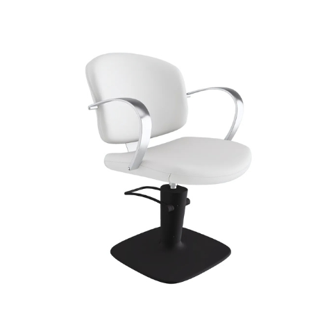 Roterande stylingstol. Armstöd i polerad aluminium, struktur i plywood och polyuretanskum.