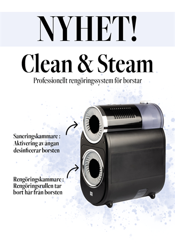 Clean & Steam är det nya 2-i-1 automatiska rengöringssystemet som rengör och desinficerar dina borstar och kammar på rekordtid:den perfekta apparaten för att underlätta ditt dagliga salongsarbete. Den har två separata områden som kan användas samtidigt för maximal mångsidighet. Förutom att den är praktisk, lätt att använda samt rengöra så är den även extremt tyst!