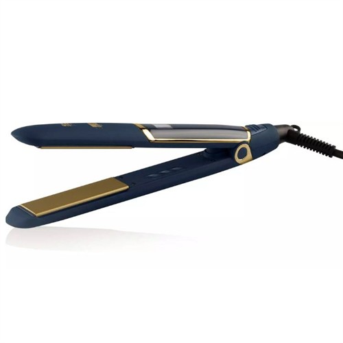 Den ergonomiska designen i kombination med en 360° roterbar sladd på 2,5 meter gör arbetet smidigt och följsamt, även vid mer avancerad styling. Plattången levereras i en elegant blå och guldfärgad box – perfekt för både förvaring och presentation.